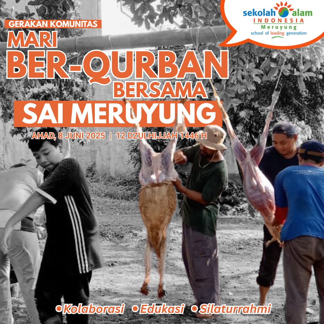 Ayah Bunda, Alhamdulillah kegiatan Qurban telah dilaksanakan yang hadir sebagai momen terbaik untuk menanamkan makna keikhlasan, kepedulian, dan keteladanan kepada anak-anak kita. Salah satu caranya: Berqurban bersama di Sekolah Alam Indonesia Meruyung.